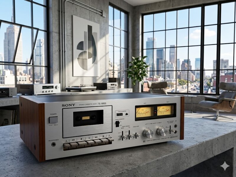Registratore a cassette made in Japan, due testine, sistema di riduzione del rumore Dolby B, appena revisionato in laboratorio, sostituite cinghie e testato. Fianchetti originali in noce, eccellenti condizioni estetiche, perfettamente funzionante.